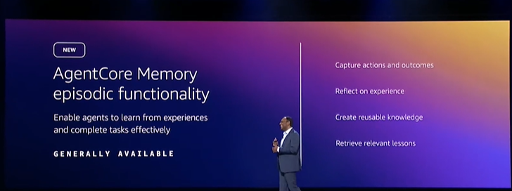 "At the heart of what makes agents truly intelligent is memory and context," opined Swami in his re:Invent 2025 day 3 keynote. A new episodic functionality was made generally available to enhance the already existing AgentCore's Memory component. This allows an agent to build a coherent understanding of users over time.